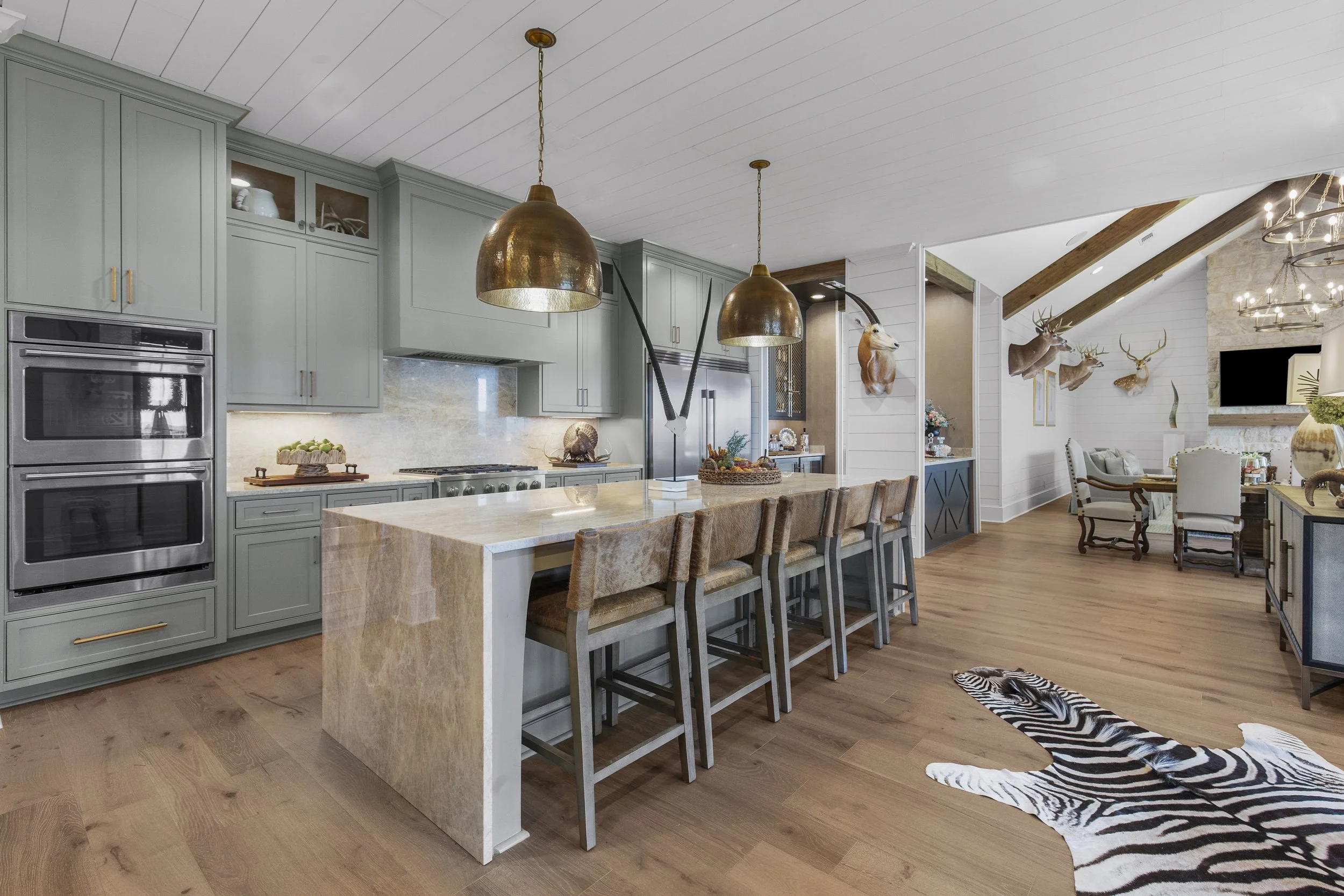 Entertaining was a key priority. “We all love to cook, every one of us,” Paige says. “There’s always someone marinating, someone grilling, someone slicing... and plenty of opinions being offered from across the island.” The kitchen, with its open layout and clean lines, serves as the true heart of the home which is a gathering place for wild game, homemade pizza, or a glass of wine. It’s where laughter and conversation flow as freely as the river itself.
